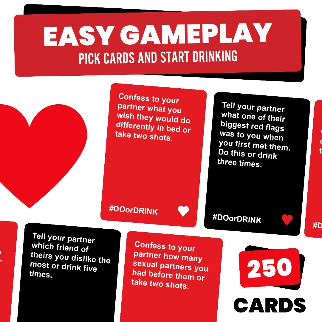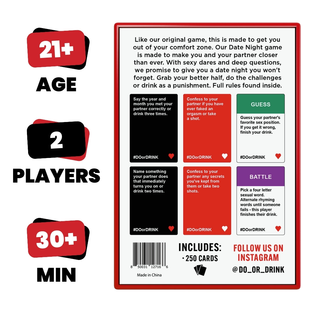 Get to know your partner better with truth or dare style couples games. Comes with 250 challenge, battle, dare, fill in the blank, and guess cards made by couples