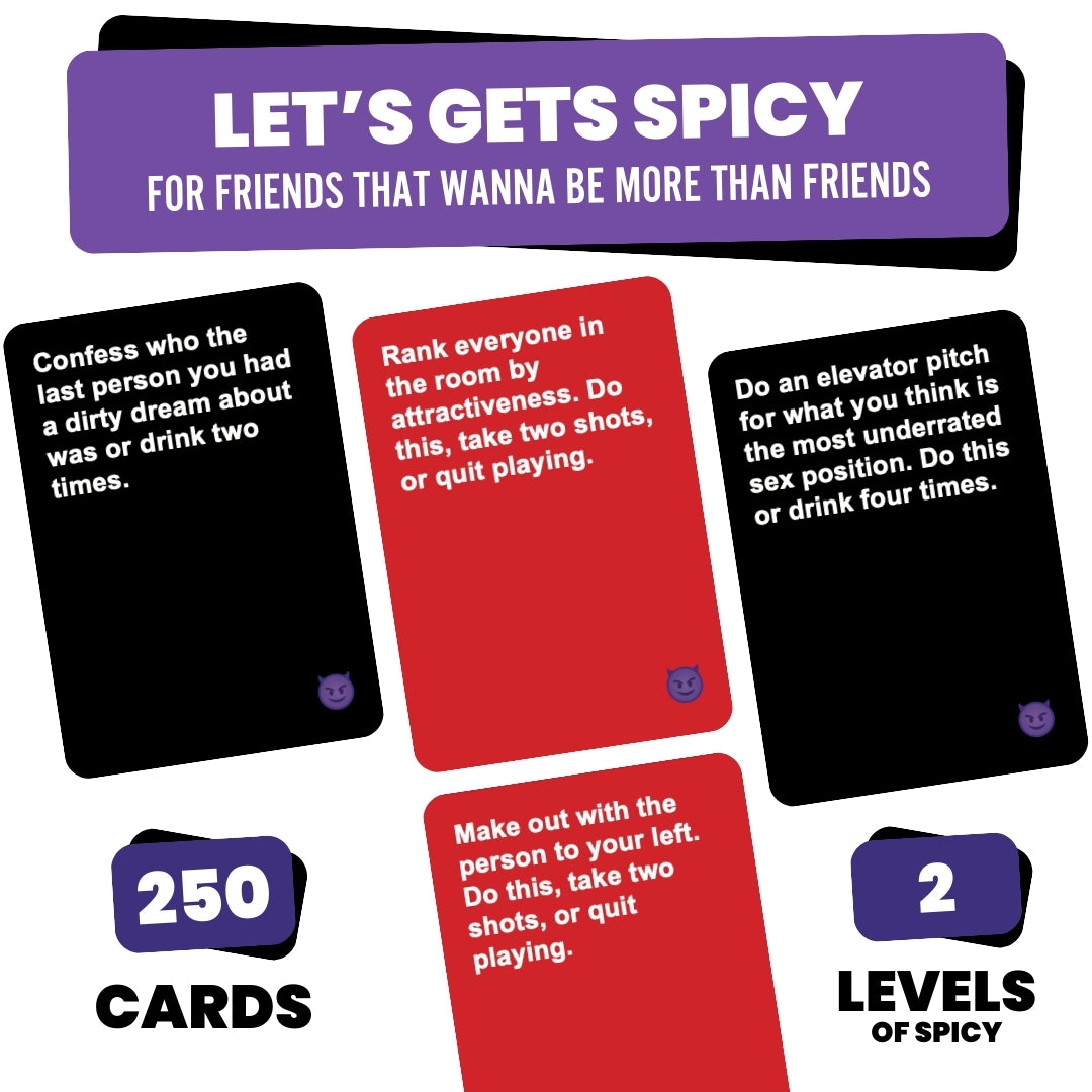 • Get Ready To Spice Up Game Night with 250 Challenge cards that could put you in risque situations...